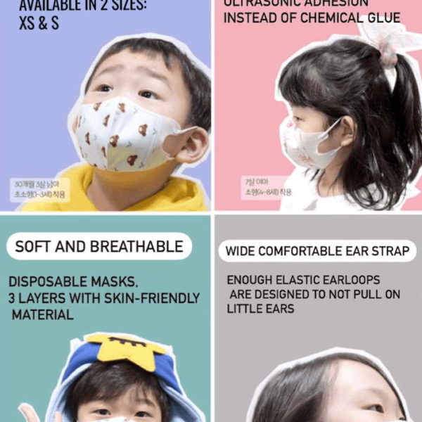 $7.00KF94 Medici kids disposable face mask is 100% made in Korea using a good quality material SS grade non-woven fabric and MB filter penetration of 94% or more.