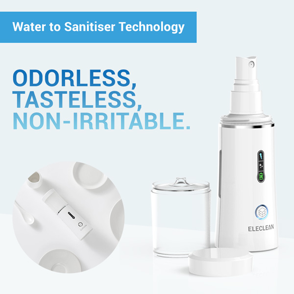 Eleclean Portable is the world’s first portable hand and surface sanitiser device that produces safe and effective sanitising solution using water, within 15 minutes.