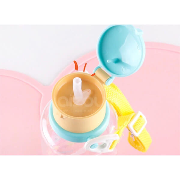 A straw-type water bottle that even small children can easily drink. Since the straw comes out with one push, even children can easily operate it. Lightweight and with a shoulder belt, children can carry it with them. The mouthpiece is made of soft silicone.