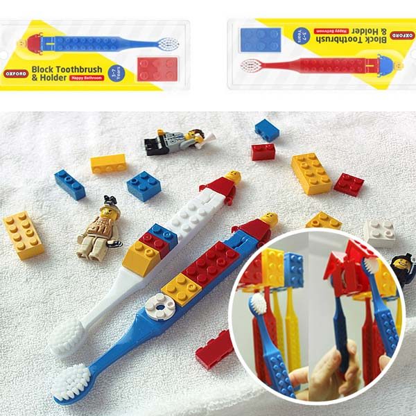 A block-shaped toothbrush allowing children to approach and practice in a friendly way.