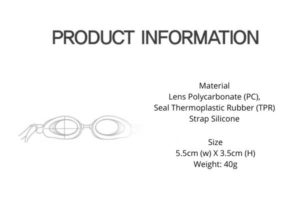 | Material | Lens Polycarbonate (PC), Seal Thermoplastic Rubber (TPR), Strap Silicone |