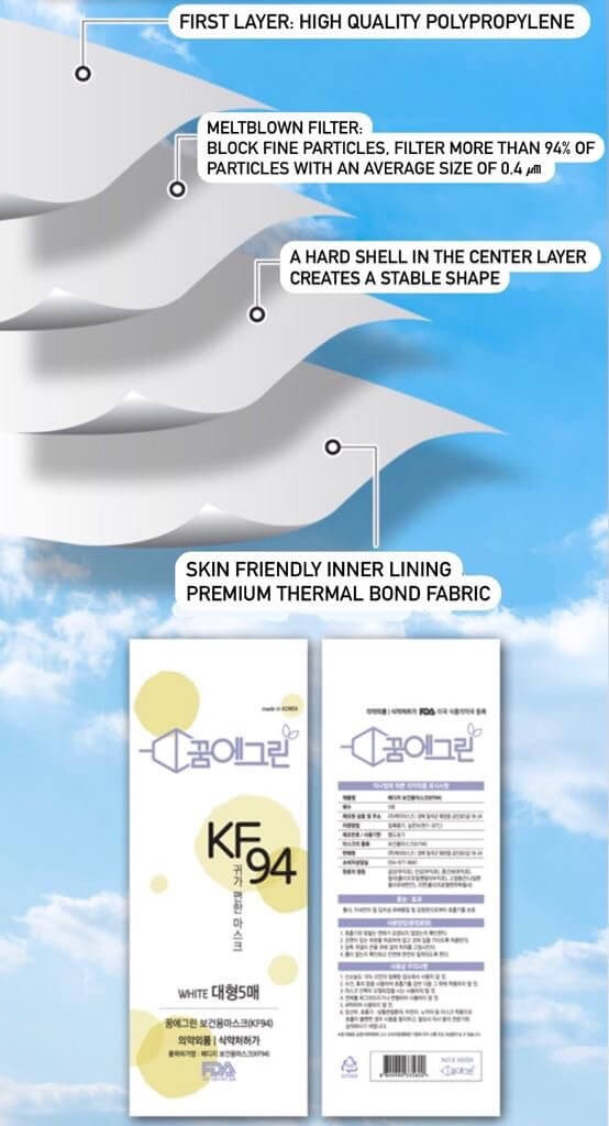 KF94 is the No 1 Korean disposable mask that uses good quality 4 layers materials.
