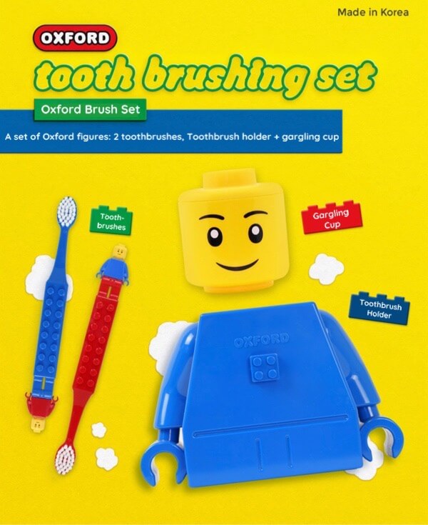 A cute set of Oxford block toothbrush consists of gargling cup, 2 toothbrushes and toothbrush holder.