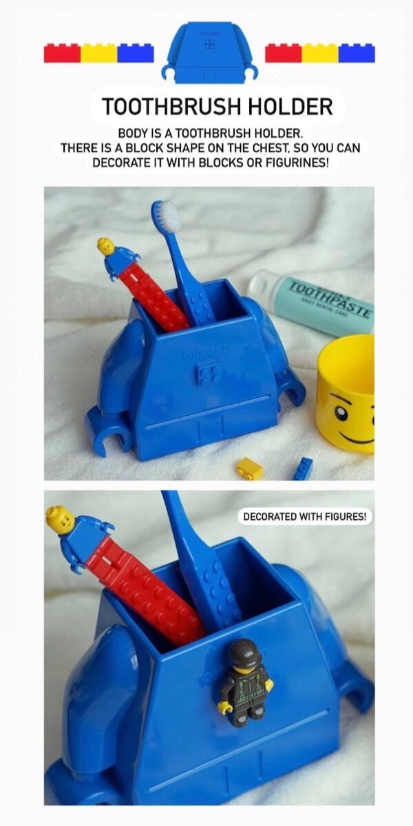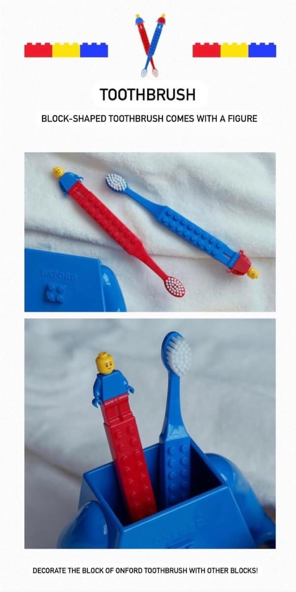 The block-shaped toothbrush allowing children to approach and practice in a friendly way.