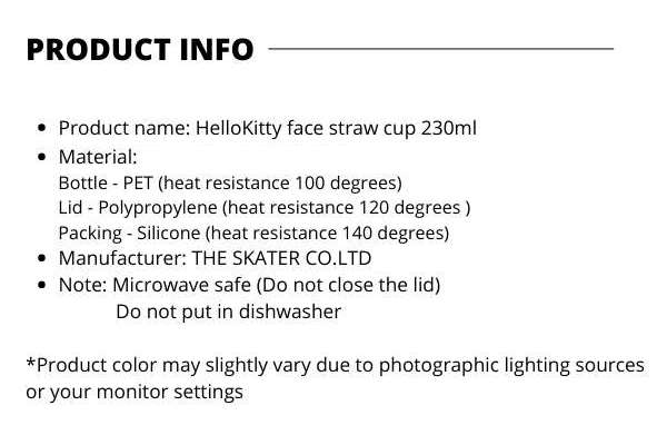 | Material | Bottle – PET (Heat resistance 100 degrees) |