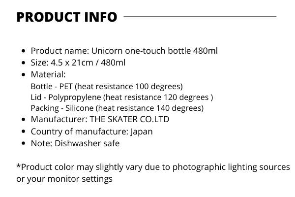 | Material | Bottle – PET (Heat resistance 100 degrees) |